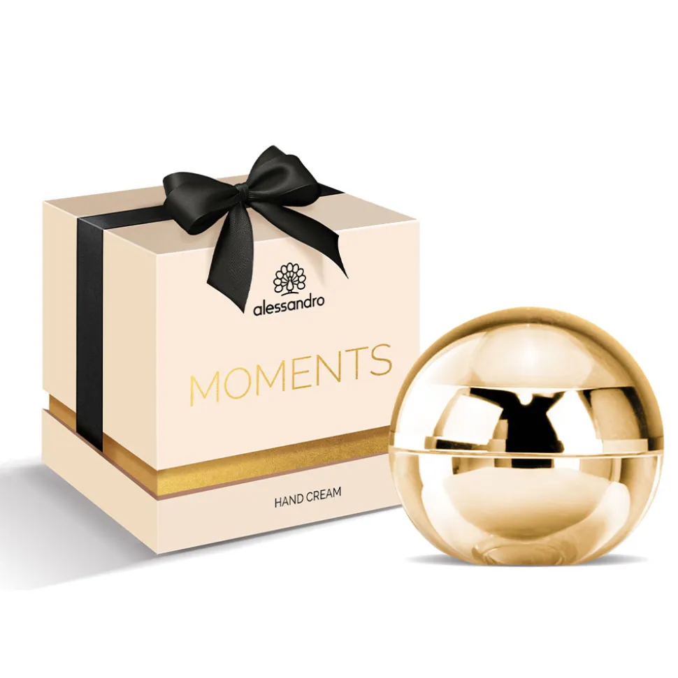 Das elegante Design der Alessandro Hand!Spa Moments Hand Cream besticht durch eine ansprechende, sphärische Form, die sich harmonisch in jedes Badezimmerambiente einfügt. Der goldene Glanz der Verpackung verleiht ihr eine luxuriöse Note und erinnert an kostbare Schmuckstücke. Der beiliegende goldene Spatel ergänzt das edle Erscheinungsbild und ermöglicht eine hygienische Entnahme der Creme. Diese stilvolle Kombination aus Form und Farbe macht das Produkt nicht nur zu einem Pflegeerlebnis, sondern auch zu einem optischen Highlight.