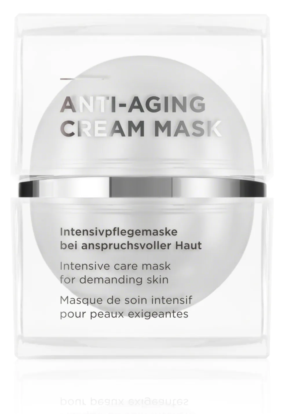 Die ANNEMARIE BÖRLIND Anti-Aging Cream Mask präsentiert sich in einer eleganten, transparenten Verpackung, die den hochwertigen Inhalt geschmackvoll in Szene setzt. Der kugelförmige Tiegel in einem klaren Gehäuse zieht mit seiner modernen Ästhetik die Blicke auf sich. Die subtile Silbernheit des Deckels unterstreicht das edle Design und verleiht dem Produkt eine zeitlose Eleganz. Dieser luxuriöse Look wird durch die sorgfältige Gestaltung des Flakons verstärkt, sodass jede Anwendung zu einem ästhetischen Erlebnis wird.