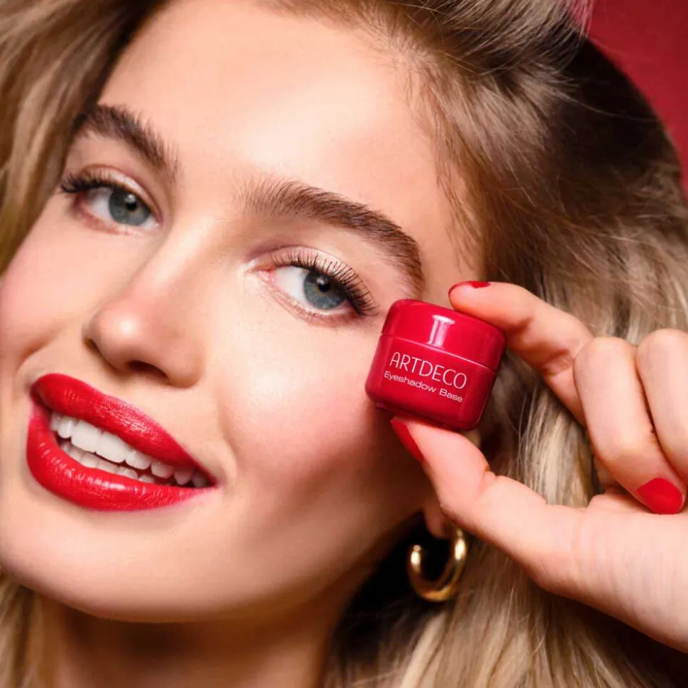 Ein echter Hingucker – und das schon vor dem Auftragen: In dieser limitierten Edition erstrahlt das Döschen unserer Eyeshadow Base in einem ikonischen und edlen Rotton!Doch nicht nur das Design überzeugt: Du bist es leid, dass Dein Augen-Make-up sich nach nur wenigen Stunden verabschiedet und nur noch als dicker Streifen in der Lidfalte zurückbleibt?Dann entdecke die Eyeshadow Base: Mit ihrer zarten, cremigen Konsistenz verhindert sie das Absetzen von Lidschatten in der Lidfalte und verbessert wesentlich dessen Haltbarkeit, Farbintensität und Leuchtkraft. Der Lidschatten lässt sich leichter auftragen, besser verteilen und haftet länger. So können sich kleine Partikel nicht lösen, was auch ideal für Kontaktlinsenträger ist. Zusätzlich neutralisiert die Base den Farbton des Augenlides. Einfach die perfekte Grundlage für Dein aufwändiges Augen-Make-up!