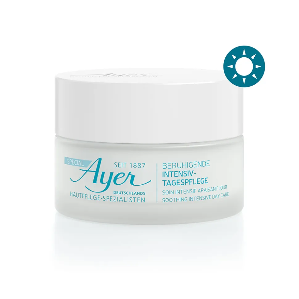 Die Ayer Beruhigende Intensiv-Tagespflege ist die harmonische Antwort auf die Bedürfnisse empfindlicher und strapazierter Haut. Dank der verbesserten Formulierung mit Panthenol, entzündungshemmendem Kamillen- und Süßholzextrakt bietet sie zuverlässige Pflege und Schutz. Die ultraleichte Creme zieht schnell ein und hinterlässt ein angenehm weiches Hautgefühl. Bei regelmäßiger Anwendung werden Irritationen, Spannungsgefühle und Rötungen effektiv gemildert. Gleichzeitig stabilisiert sie die Hautbalance und stärkt die Widerstandskraft gegen äußere Einflüsse. Als Teil der AYER SPECIAL-Linie ist diese Tagespflege ideal für sensible Haut, die eine beruhigende und ausgleichende Unterstützung benötigt.
