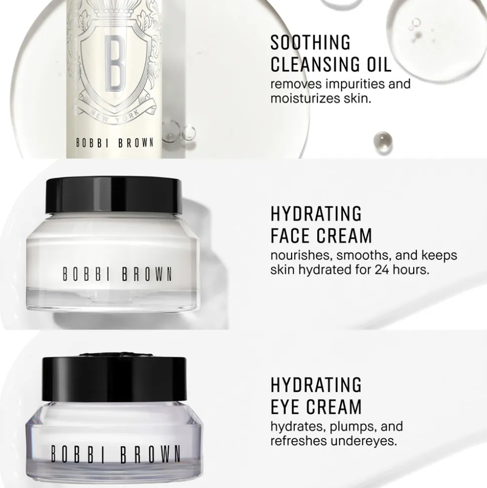 Das Bobbi Brown Season Recharge Skincare Set ist Ihre Lösung für trockene Haut in der kalten Jahreszeit. Es beinhaltet das sanfte Beruhigende Reinigungsöl, das Unreinheiten und wasserfestes Make-up gründlich entfernt, während es Ihre Haut mit wertvoller Feuchtigkeit versorgt. Ergänzt wird es durch die hydratisierende Gesichtscreme, die Ihre Haut nährt, glättet und 24 Stunden lang intensiv mit Feuchtigkeit versorgt. Die schnell einziehende Hydrating Augencreme erfrischt die empfindliche Augenpartie und macht sie sichtbar praller. Mit diesen drei Produkten bieten Sie Ihrer Haut die notwendige Pflege, um strahlend und gesund durch den Winter zu kommen.