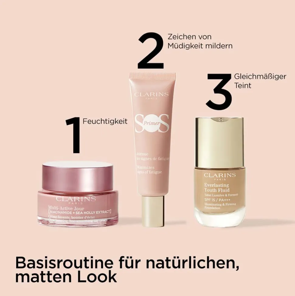 Der CLARINS SOS Primer ist die ideale Wahl für alle, die einen ausgeglichenen und vitalisierten Teint wünschen. Mit seiner Rosé-Nuance verleiht er Ihrer Haut ein frisches und ausgeruhtes Aussehen. Durch den innovativen High-Lumitech Complex wird der Teint sofort aufgehellt und belebt, während der Anti-Pollution Complex Sie vor schädlichen Umwelteinflüssen schützt. Die pflanzenangereicherte Formel in Kombination mit dem Mikrobiote Complex sorgt dafür, dass Ihre Hautflora täglich im Gleichgewicht bleibt. Die 24-Stunden-Hydratisierung bietet langanhaltenden Komfort und macht Ihre Haut von Tag zu Tag schöner. Egal, welche Bedürfnisse Ihre Haut hat, dieser Primer passt sich an und sorgt auch ohne Makeup für strahlende Ergebnisse.