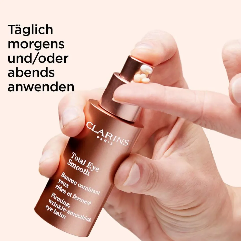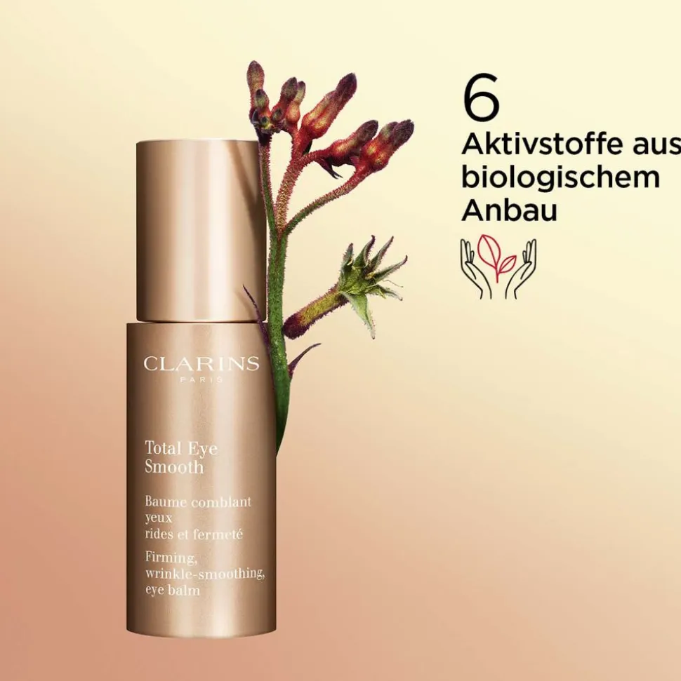 CLARINS Total Eye Smooth ist der ultimative Pflegepartner für Ihre Augenpartie. Dieses hochwertige Augenpflegeprodukt kombiniert die glättende Wirkung eines Serums mit dem wohltuenden Komfort eines Balsams. Dank sorgfältig ausgewählter Pflanzenextrakte, darunter der biologische Extrakt der australischen Känguru-Blume, wird Ihre Haut nicht nur gestrafft, sondern auch sichtbar erfrischt. Das Erscheinungsbild von Falten wird durch einen speziellen „Filler“-Effekt deutlich gemildert. Gleichzeitig reduziert die innovative Formel Augenschwellungen und -schatten, was zu einer strahlenderen und jugendlicheren Erscheinung beiträgt. Der dezente Duft von Rose und Kamelie rundet das Pflegeerlebnis perfekt ab und hüllt Ihre Sinne in eine wohltuende Frische.