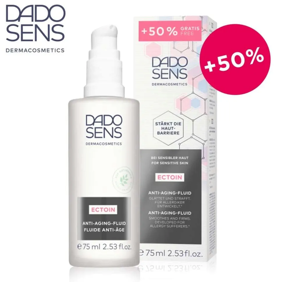 Das DADO SENS Anti-Aging Fluid ist die ideale Zusatzpflege für sensible und reife Haut. Es ist speziell entwickelt, um den besonderen Bedürfnissen von Menschen mit Allergien, Neurodermitis, Psoriasis, Rosacea oder Spät-Akne gerecht zu werden. Mit einer einzigartigen Formel aus Ectoin, Ceramiden und Isoflavonen, wirkt dieses Fluid effektiv der vorzeitigen Hautalterung entgegen. Es stärkt das hauteigene Schutzsystem und mildert sichtbar Falten, während es Ihre Haut glättet und strafft. Die intensive Feuchtigkeitspflege fördert die natürliche Vitalität der Hautzellen und unterstützt deren Regeneration. Vertrauen Sie auf diese therapiebegleitende Pflege, deren Verträglichkeit umfassend getestet wurde.