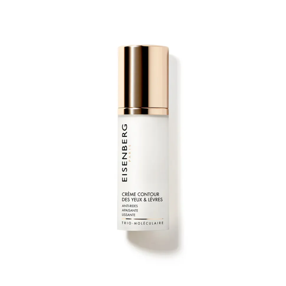 Der Flakon der EISENBERG Crème Contour des Yeux & Lèvres besticht durch seine elegante, schlanke Form und die zeitlose Kombination aus transparentem Weiß und edlem Gold. Die klare Linienführung spiegelt die Reinheit und Präzision der enthaltenen Pflegeformel wider. Der goldene Verschluss verleiht dem Design eine luxuriöse Note und sorgt für ein harmonisches Gesamtbild. Jedes Detail des Flakons strahlt eine subtile Raffinesse aus, die den hohen Qualitätsanspruch von EISENBERG unterstreicht. Dieses durchdachte Design macht die Anwendung der Creme zu einem täglichen Ritual der Schönheit.