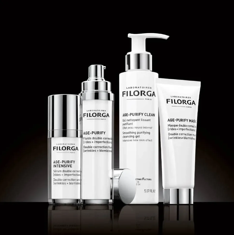 Die Filorga Age-Purify Mask vereint die Kraft innovativer Wirkstoffe, um sowohl Falten als auch Unreinheiten gezielt zu bekämpfen. Der Hyaluro-Youth Complex glättet die Haut durch aufpolsternde Hyaluronsäure und füllende Glycopeptide, während glättende Peptide Falten sichtbar reduzieren. Einzigartig ist der Dermo-Rescue Complex, der mit Zink überschüssigen Talg minimiert und durch fünf Mikro-Peeling-Säuren die Poren verfeinert. Ein natürlicher Gummiextrakt aus dem Pistazienbaum reinigt die Haut bis in die Tiefe und verringert die Poren sichtbar. Die nicht trocknende, weiße Tonerde absorbiert überschüssigen Talg und sorgt für einen nachhaltig mattierten Teint. Die grüne Toncreme-Textur spendet zugleich Feuchtigkeit, ohne die Haut zu spannen.