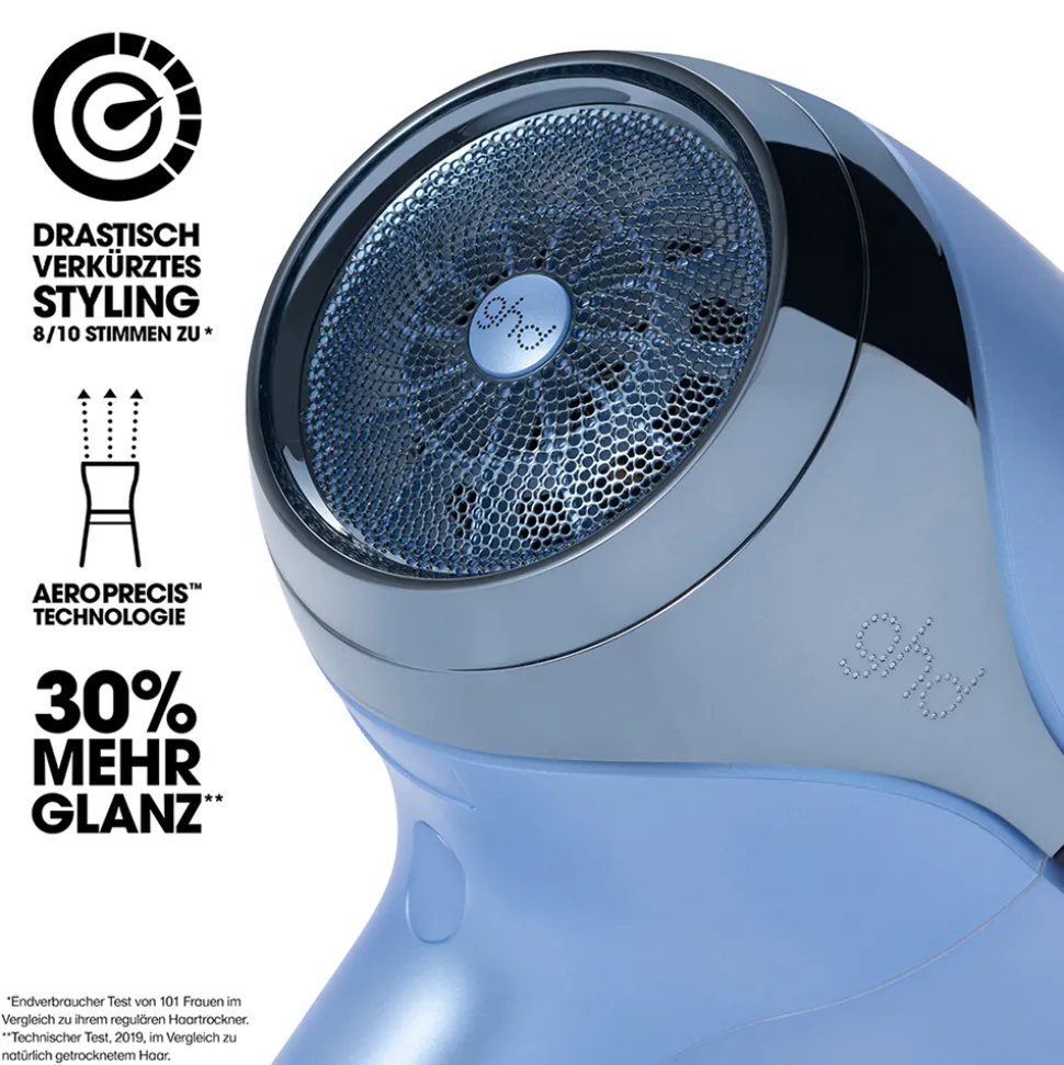 Der ghd – good hair day Iced Luxe Haartrockner repräsentiert einen Meilenstein in der Welt der Haarpflege. Mit seinem innovativen Design und durchdachten Funktionen ermöglicht er eine unvergleichliche Styling-Erfahrung. Die Aeroprecis Technologie sorgt für einen fokussierten Luftstrom, der Temperaturschwankungen vermeidet und so eine präzise Kontrolle bietet. Der Haartrockner ist mit einer modernen Ionen-Technologie ausgestattet, die Frizz reduziert und für ein seidig glänzendes Finish sorgt. Dank der variablen Temperatur- und Leistungsstufen können Sie das Gerät individuell an Ihre Stylingbedürfnisse anpassen. Die optimierte Gewichtsverteilung und das ergonomische Design erleichtern das Handling erheblich und machen das Trocknen und Föhnen zu einem mühelosen Erlebnis. Tauchen Sie ein in die Welt der präzisen Haarpflege und erleben Sie die beeindruckende Leistung des ghd helios®.
