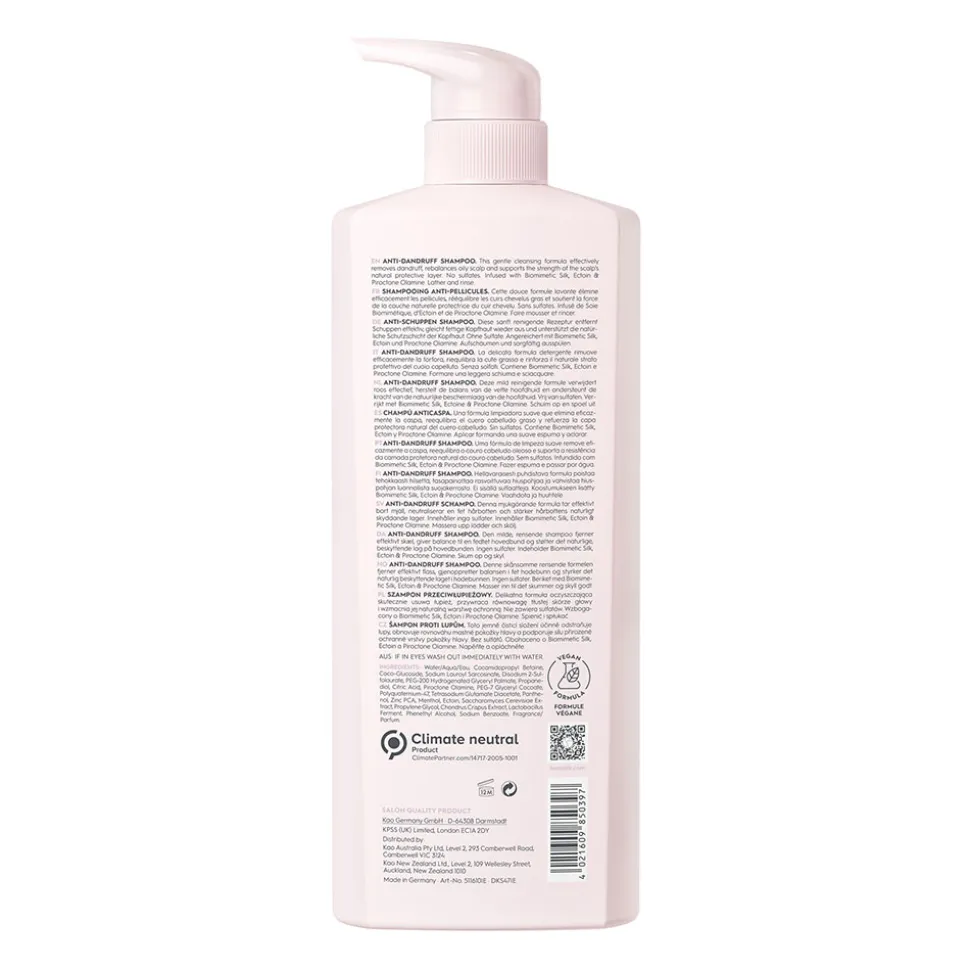 Das Kerasilk Anti-Schuppen Shampoo ist die perfekte Wahl für eine ausgeglichene Kopfhaut. Angereichert mit Biomimetischer Seide, Ectoin und Pirocton Olamin, sorgt es für eine sanfte und gründliche Reinigung. Die vegane Formulierung entfernt effektiv Schuppen und verhindert zuverlässig deren Neubildung. Gleichzeitig pflegt es juckende, trockene und gereizte Kopfhaut und bewahrt die natürliche Feuchtigkeitsbalance. Es befreit das Haar von Schmutz, Sebum, Öl und Schadstoffen, ohne die Kopfhaut zu reizen. Darüber hinaus neutralisiert es hartes Wasser und verhindert so mineralische Rückstände. Sie erleben ein reines Haargefühl, das von Ausgeglichenheit zeugt. Das klimaneutrale Produkt ist frei von Silikonen, Sulfaten, Farbstoffen und anderen unerwünschten Inhaltsstoffen, was es ideal für empfindliche und unausgeglichene Kopfhaut macht.