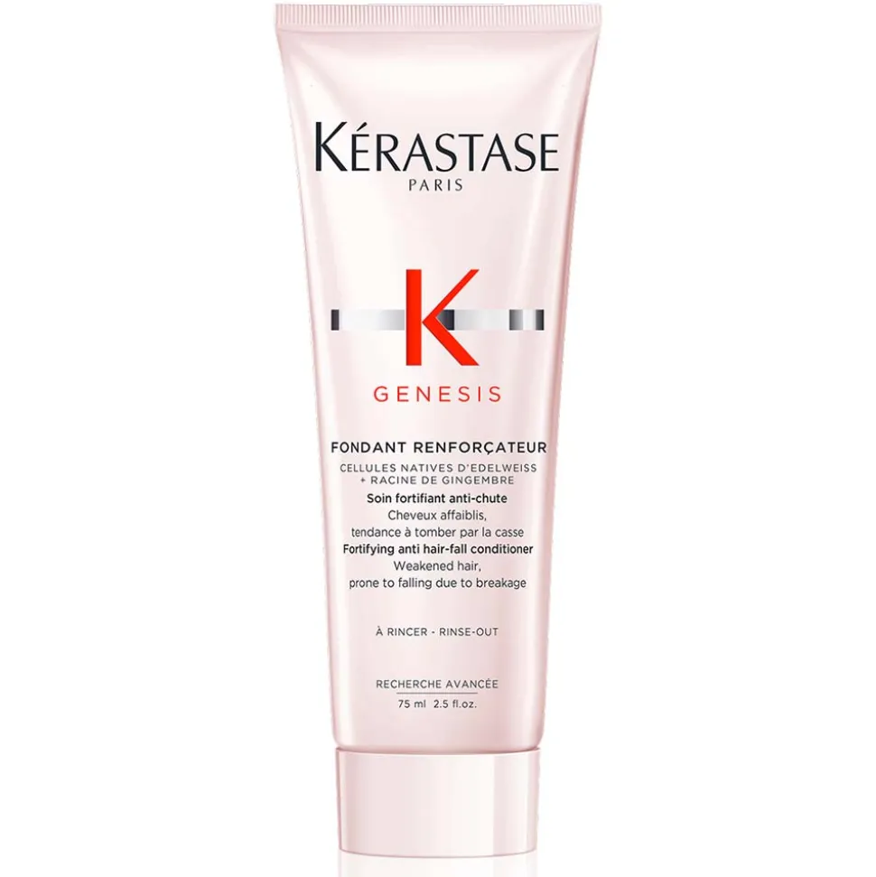 Fondant Renforçateur Genesis von Kérastase ist ein kräftigender Conditioner gegen Haarverlust aus dem Wurzel und durch Haarbruch. Diese cremige Formel wirkt Haarbruch entgegen und sorgt für ein schwereloses Finish. Sie hilft beim Wiederaufbau der Haarfaser und stärkt ihre natürliche Widerstandsfähigkeit, um das Haarverlustrisiko aufgrund von Haarbruch zu senken. Die Formel enthält eine wirkungsvolle Kombination von Edelweiss-Zellen und Ingwerwurzel, sie glättet und stärkt die Haarfaser und macht sie geschmeidig. Gleichzeitig wird das Haar intensiv gepflegt, ohne es dabei zu beschweren. Das Haar ist gleichmässig, glänzend und gestärkt.