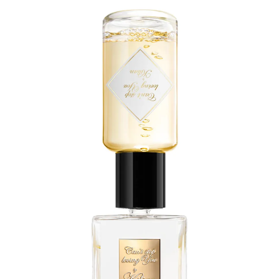 Der Flakon des Kilian Paris Can’t Stop Loving You Eau de Parfum Nat. Spray Refill ist ein Sinnbild eleganter Schlichtheit. Die klare Glasflasche zeigt den zarten goldenen Duft, während der schwarze Verschluss einen markanten Kontrast bildet und zugleich stilvolle Zurückhaltung ausstrahlt. Die raffinierte Form und das dezente Etikett harmonieren perfekt, um einen hochwertigen Eindruck zu hinterlassen. Dieses Design spiegelt die Essenz des Duftes wider: unaufdringlich verführerisch und von zeitloser Eleganz geprägt.
