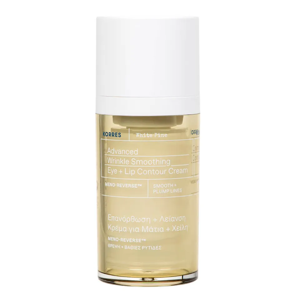 Die KORRES White Pine Glättende Augen- und Lippenkonturcreme entfaltet ihre Wirkung speziell für die Bedürfnisse reifer Haut. Die revolutionäre MENO-REVERSE™ Technologie zielt darauf ab, feine Linien zu glätten und die Haut sichtbar zu revitalisieren. Durch die Kombination wertvoller weißer Blütenextrakte wird das Erscheinungsbild von Schwellungen und Augenringen reduziert. Diese Creme, dermatologisch und ophthalmologisch getestet, bietet eine besondere Pflege, die auf die empfindlichen Bereiche um Augen und Lippen abgestimmt ist. Ihre konsistente, ölartige Textur sorgt dafür, dass sie sanft einzieht und der Haut ein strahlendes Aussehen verleiht. Ein Produkt, das speziell für Frauen in den Wechseljahren entwickelt wurde, und eine ideale Ergänzung für Ihre tägliche Hautpflegeroutine darstellt.