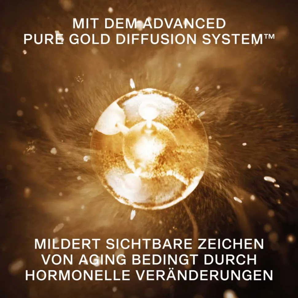 Der Pure Gold Radiance Nocturnal Balm mit dem Exclusive Cellular Complex™ und dem Gold & Peptide Powered Meno Complex wurde entwickelt, um die natürlichen Hautfunktionen und ihre nächtliche Regeneration gezielt zu unterstützen – besonders in Phasen hormoneller Veränderungen. Der Balm unterstützt den natürlichen Hauterneuerungsprozess und die Kollagenproduktion und hilft, die sichtbaren Zeichen der Hautalterung zu minimieren.