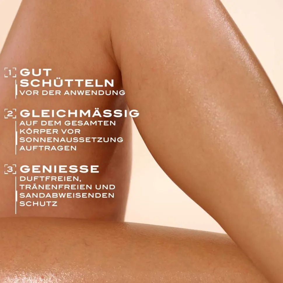 Der Sun Beauty Body Mist SPF50 von Lancaster, der Nr. 1 Prestige-Sonnenpflegemarke in Europa1, schützt die Haut über den herkömmlichen UV-Schutz hinaus. Er bietet eine augenblicklich coole Wirkung für Outdoor-Aktivitäten. Die Einwirkung von Sonnenlicht ist für 80 % der sichtbaren Alterungsanzeichen2 verantwortlich, ein Prozess, der als lichtbedingte Hautveränderung bekannt ist. Da UVA- und UVB-Strahlen nur 10 % des Sonnenspektrums ausmachen, geht unsere Formulierung über herkömmlichen Sonnenschutz hinaus und schützt vor sichtbaren Licht- und Infrarotstrahlen. Unsere Full-Light TechnologieTM bietet einen 10-mal umfassenden Sonnenschutz*. 1Insgesamt, 5 europäische (FR, DE, UK, IT & ES) Prestigemärkte & -marken. In Werten und Einheiten, 2017 bis Juni 2024. Circana Group LP/BeautyTrends®. 2Die Weltgesundheitsorganisation & Yale Medicine, Studie zu lichtbedingter Hautalterung.
