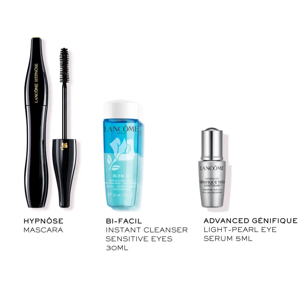 Das Lancôme Mascara Set verzaubert mit seiner einzigartigen Zusammenstellung, die Ihre Augen in den Mittelpunkt rückt. Die N° 1 Mascara sorgt für volles Volumen, ohne zu verkleben, und lässt sich in Schichten auftragen, bis Sie den gewünschten Look erreichen. Die spezielle Bürste trennt und definiert Ihre Wimpern meisterhaft, sodass jeder Augenblick hypnotisch wirkt. Ergänzend dazu entfernt das BI-Facil Mizellenwasser selbst hartnäckige Make-up Rückstände gründlich, während es die Haut sanft pflegt. Das Advanced Génifique Augen Serum rundet das Set ab, indem es Tränensäcke, Augenringe und Falten minimiert. Ihre Augen erscheinen größer und strahlen in jugendlicher Frische. Dieses Set bietet Ihnen eine umfassende Pflege für jeden Tag.