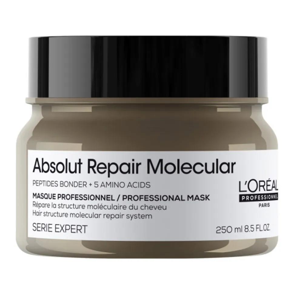 Die L’Oréal Professionnel Molecular Maske ist die perfekte Lösung für geschädigtes Haar und bietet eine unvergleichliche Regeneration. Diese Maske repariert jahrelange Haarschäden mit beeindruckender Wirksamkeit und ist angereichert mit innovativen Peptidbondern und hochwertigen Aminosäuren. Diese Inhaltsstoffe dringen tief in die Haarstruktur ein, um das Haar von innen heraus zu stärken und ihm neue Vitalität zu verleihen. Die einzigartige, von der Hautpflege inspirierte Textur sorgt für eine zarte Pflege, die sich sofort in die Haarfaser einfügt, ohne zu beschweren. Das Ergebnis ist ein sichtbar kräftigeres und gesund aussehendes Haar, das durch seine Geschmeidigkeit und verbesserte Kämmbarkeit überzeugt.