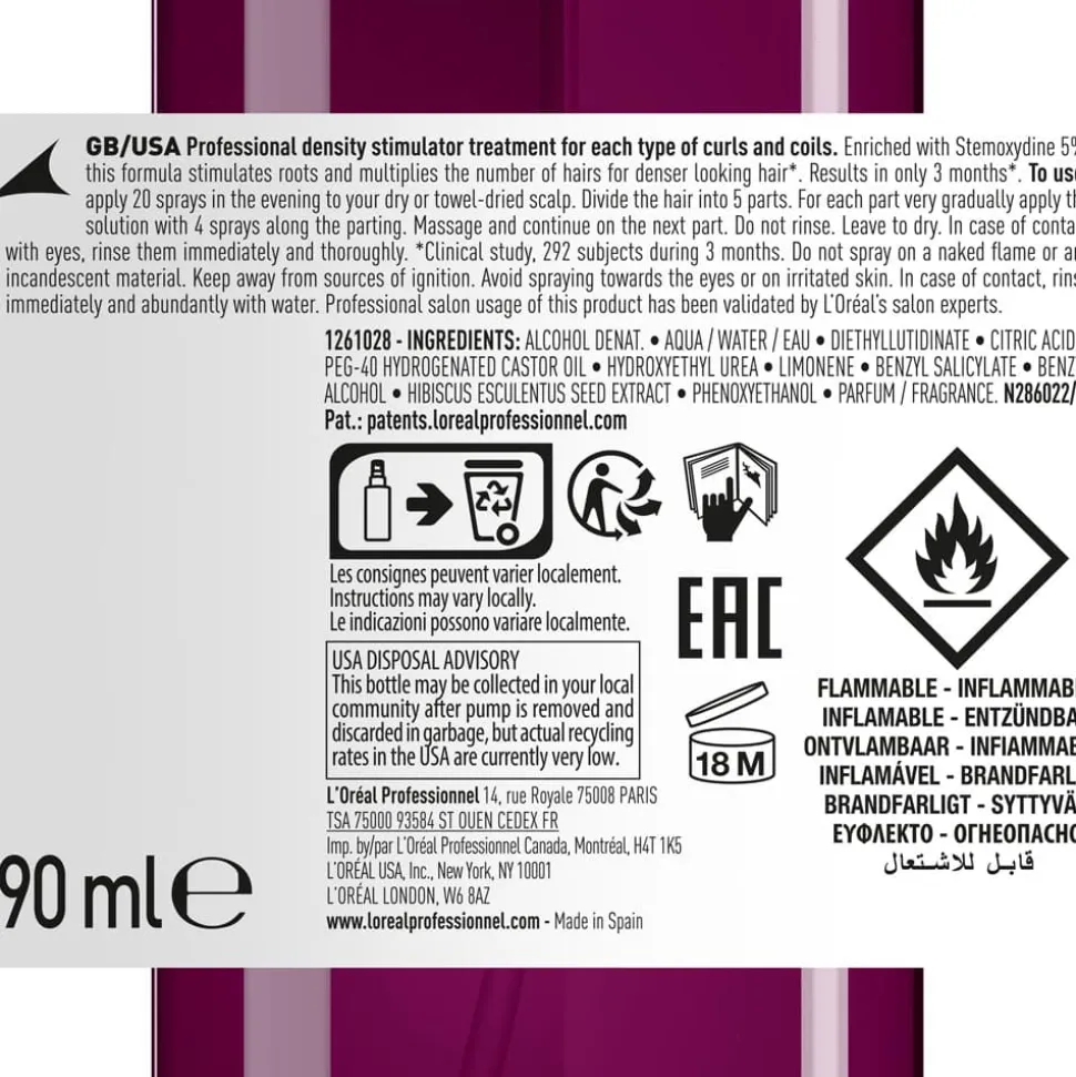 Der L’Oréal Professionnel Density Stimulator ist ein wahres Highlight in der Haarpflege für lockige und wellige Haartypen. Die innovative Formel, angereichert mit Stemoxydine und Hibiskussamenextrakt, wirkt tief in den Haarwurzeln, um deren Aktivität zu steigern. Diese einzigartige Kombination fördert das Wachstum und sorgt für eine sichtbar dichtere Haarpracht innerhalb von drei Monaten. Sie erleben eine spürbare Verbesserung der Haardichte und eine belebende Frische, die Ihrem Haar seine natürliche Pracht zurückgibt. Perfekt abgestimmt für die besonderen Bedürfnisse von krausem Haar, bietet der Density Stimulator eine effektive Lösung für mehr Volumen und Sprungkraft. Vertrauen Sie auf die exzellente Expertise von L’Oréal Professionnel.