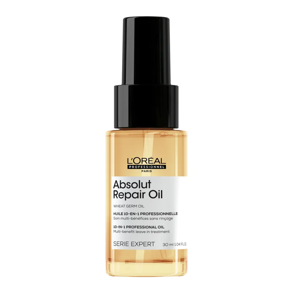 Jetzt neu als Mini: Das Absolut Repair Leave-In Haaröl von L’Oréal Professionnel Paris wurde speziell für trockenes und strapaziertes Haar entwickelt. Angereichert mit Weizenkeimöl sorgt es ohne zu beschweren für mehr Geschmeidigkeit und Kämmbarkeit. 1 Öl – 10 Vorteile: Glanz, Geschmeidigkeit, Kräftigung der Haarfaser, Entwirrung, Schützt das Haar, Feuchtigkeit, glättet die Haaroberfläche, beschwert nicht, erleichtert das Stylen.