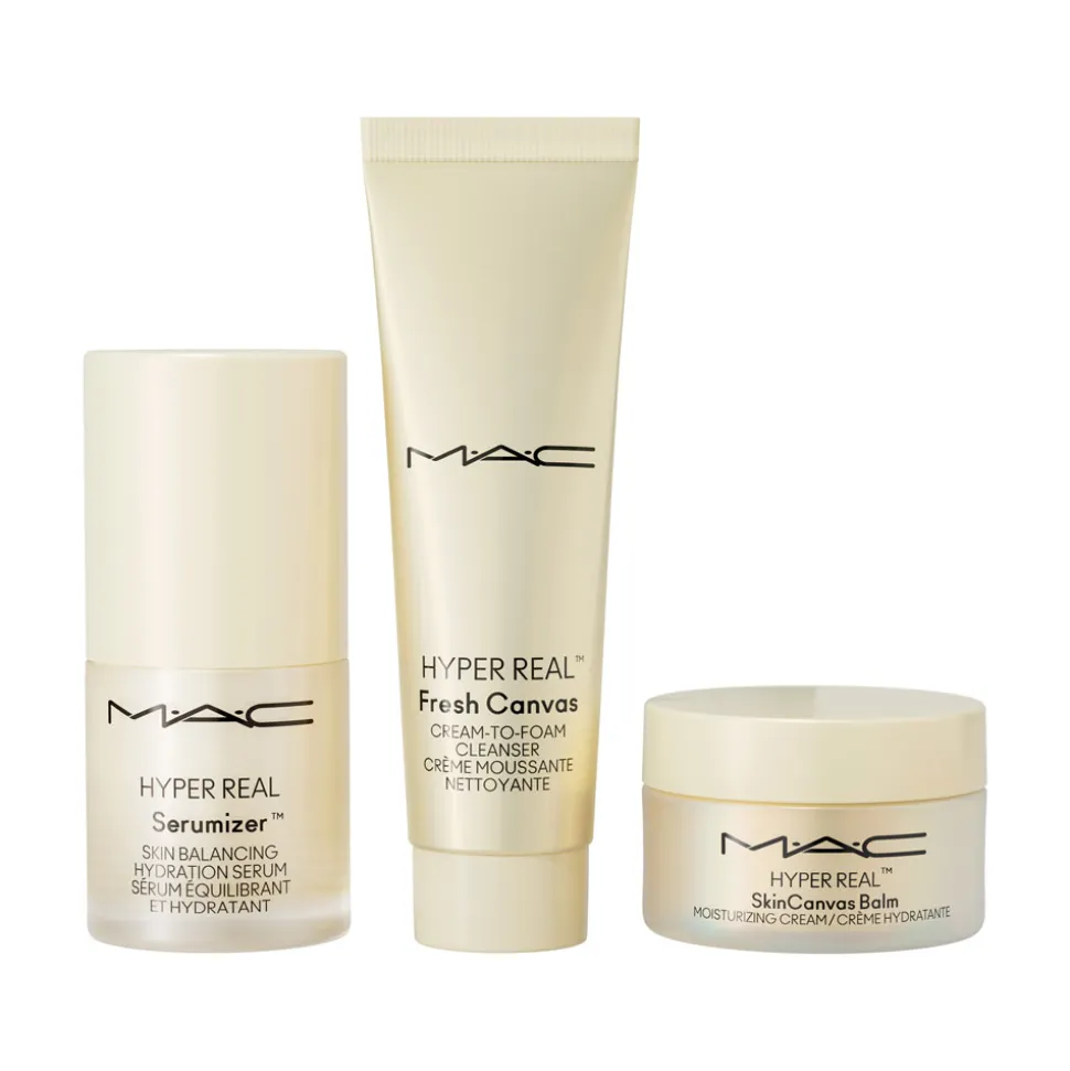 Das Mac Holy Grail Mini Hyper Real Kit bietet eine umfassende Lösung für Ihre Hautpflegebedürfnisse. Im Mittelpunkt steht das Hyper Real Serumizer™ Skin Balancing Hydration Serum, das Ihre Haut mit Feuchtigkeit versorgt und für ein ausbalanciertes Hautbild sorgt. Abgerundet wird das Set durch die Hyper Real SkinCanvas Balm™ Moisturizing Cream, die Ihrer Haut intensive Pflege und Geschmeidigkeit verleiht. Der Hyper Real™ Fresh Canvas Cream-To-Foam Cleanser reinigt sanft und bereitet die Haut optimal auf die nachfolgende Pflege vor. Dieses sorgfältig zusammengestellte Set vereint Luxus und Funktionalität in einem eleganten Gesamtpaket, das Ihre Haut zum Strahlen bringt.
