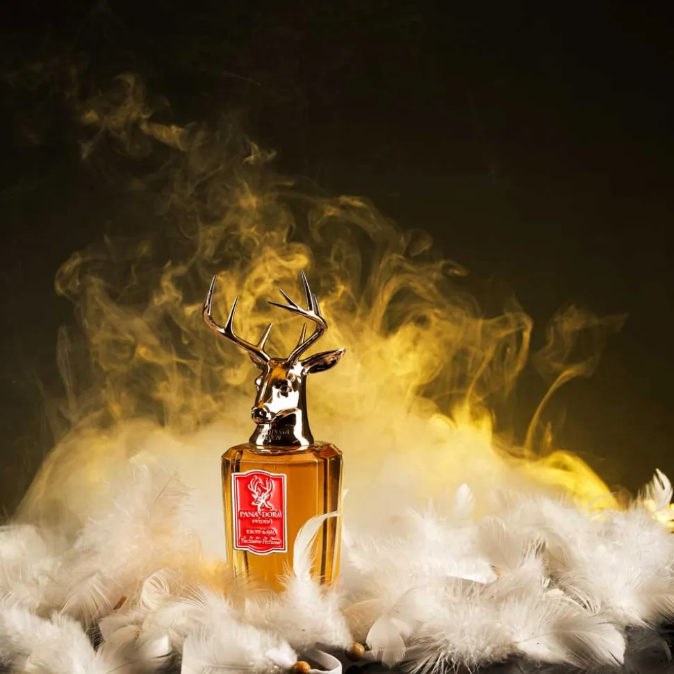 Der Flakon des Pana Dora Sweden Eau de Parfum Sprays ist ein wahres Kunstwerk. Die elegante, klare Formgebung lässt den goldenen Duft im Inneren erstrahlen, während der Verschluss durch ein kunstvoll gestaltetes Hirschgeweih seine majestätische Ausstrahlung erhält. Die feinen Details des bronzefarbenen Geweihs zeugen von handwerklicher Präzision und verleihen dem Flakon einen unvergleichlichen Charakter. Das rote Etikett auf der Vorderseite setzt einen markanten Akzent und unterstreicht die edle Erscheinung. Dieser Flakon ist mehr als ein Behältnis er ist ein ästhetisches Statement, das in jedem Raum zum Blickfang wird.