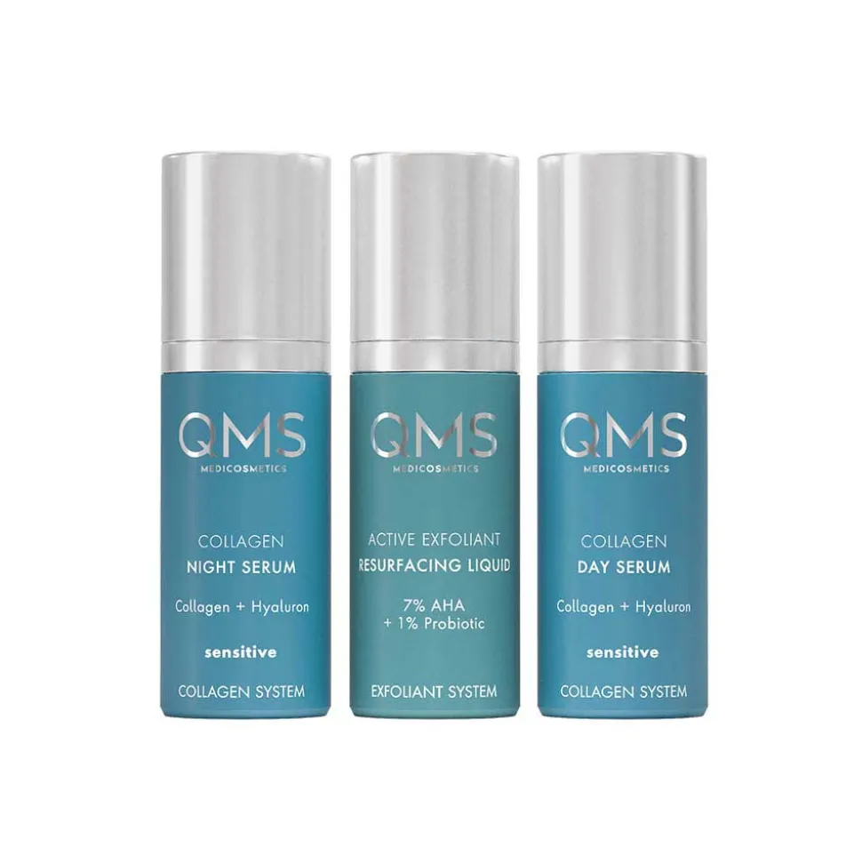 Set bestehend aus: Day Collagen Sensitive Serum, Night Collagen Sensitive Serum und 7% Active Exfoliant Resurfacing Liquid. 3x30ml