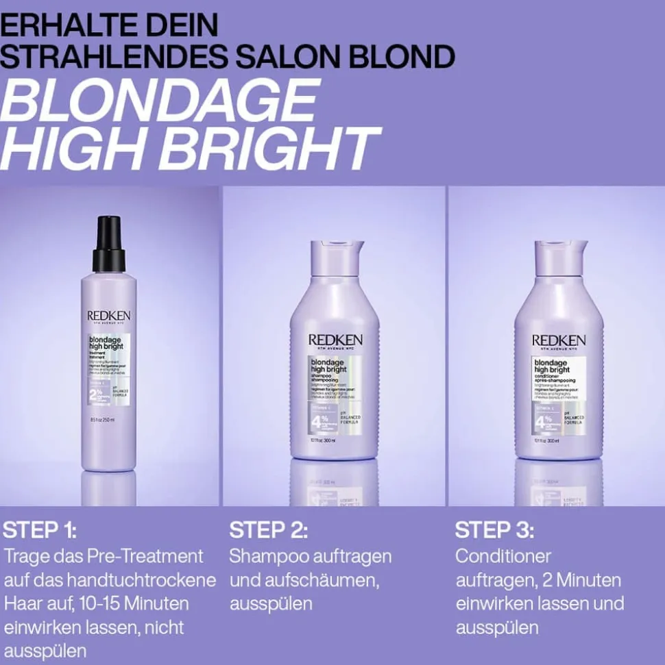 Das Redken High Bright Shampoo ist der Schlüssel zu einem strahlend blonden Haar, das durch die erlesene Kraft von Vitamin C wieder seine volle Leuchtkraft entfaltet. Diese innovative Haarpflege-Serie verwandelt mattes, dunkles Blond in ein lebendiges und glänzendes Highlight. Vitamin C, bekannt aus der Hautpflege, findet hier eine neue Bestimmung und verleiht Ihrem Haar eine erfrischende Aufhellung, die gleichzeitig die Abstände zwischen Ihren Blondierungsterminen verlängert. Der Brigthening Care Komplex ergänzt diese Wirkung optimal, indem er Ihrem blonden Haar die notwendige Pflege bietet, damit es gesund und strahlend bleibt. Entdecken Sie die perfekte Balance zwischen Pflege und Aufhellung, die Ihr Blond in vollem Glanz erstrahlen lässt.