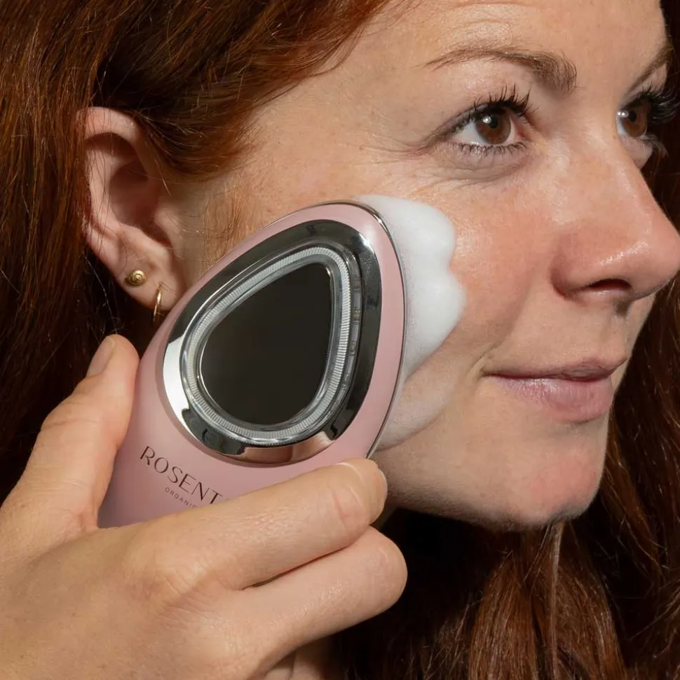 Die Rosental EMS Cleansing Brush besticht durch ein elegantes, modernes Design in einem ansprechenden Rosé-Ton. Die ergonomische Form liegt angenehm in der Hand und ermöglicht eine mühelose Anwendung. Die Vorderseite ist mit einer fein strukturierten Silikonoberfläche ausgestattet, die sowohl grobe als auch feine Borsten kombiniert, um unterschiedliche Hautbedürfnisse zu erfüllen. Die Rückseite zeigt einen glänzenden Metallbereich, der die hochwertige Verarbeitung unterstreicht. Diese perfekte Symbiose aus Funktionalität und Ästhetik macht die Rosental EMS Cleansing Brush zu einem stilvollen Begleiter in Ihrer täglichen Pflegeroutine.