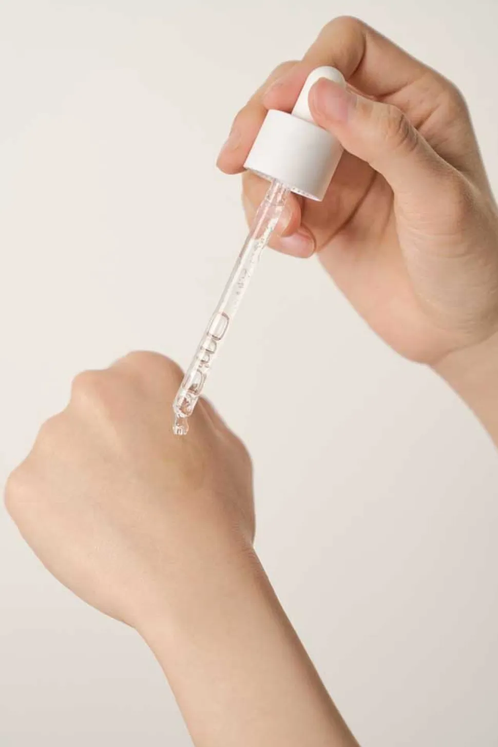 Eine angemessene Menge auf die Haut tropfen und gleichmäßig auftragen.