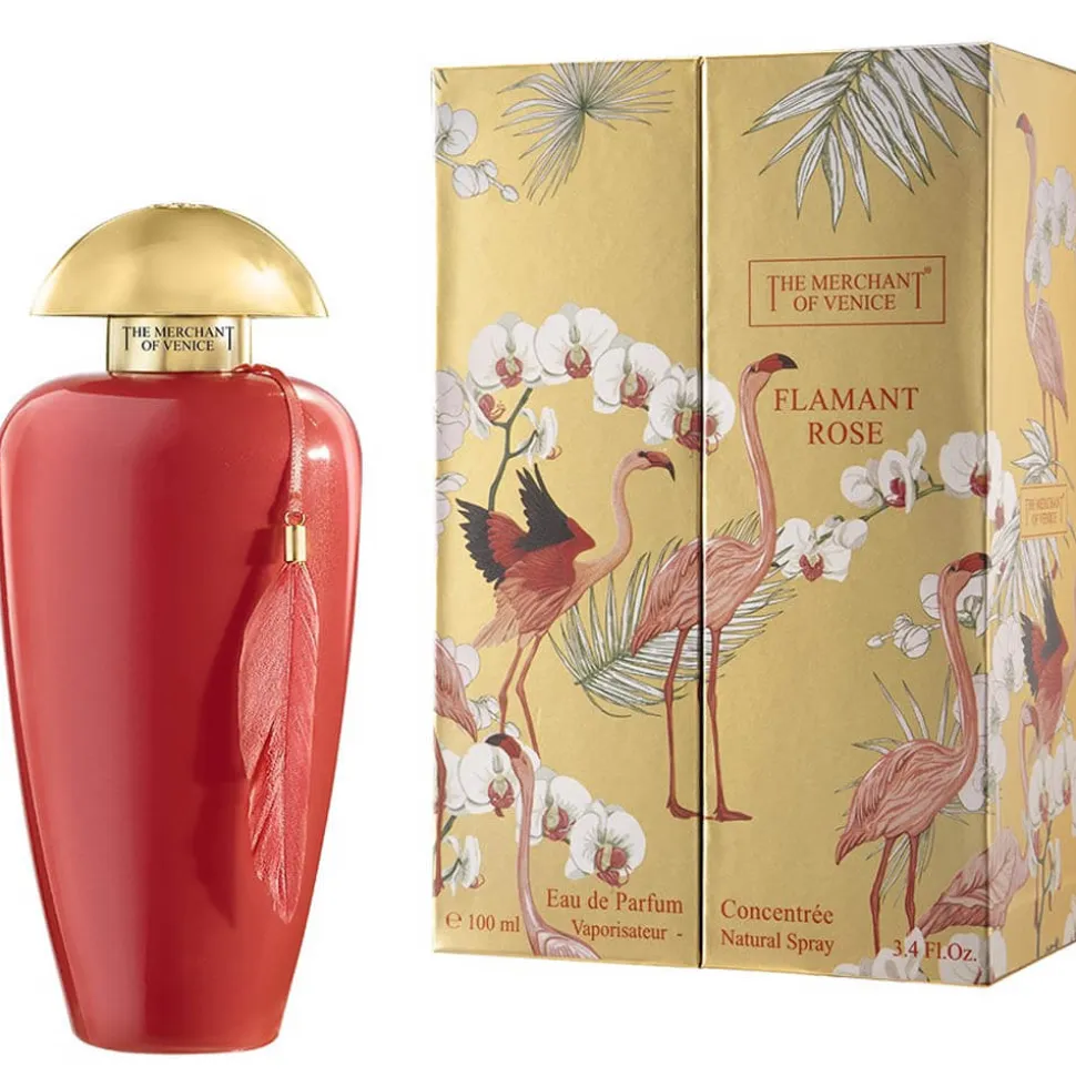 Der Flakon des THE MERCHANT OF VENICE Flamant Rose zieht sofort die Blicke auf sich. In einem leuchtenden Rot gehalten, das an die prächtigen Farben der Flamingos erinnert, überzeugt das Design durch seine geschwungene, harmonische Form. Der goldene Verschluss fügt einen Hauch von Luxus hinzu, während ein zarter, roter Anhänger den Flakon schmückt und den visuellen Anklang an die Lagunenstadt Venedig verstärkt. Die sorgfältige Gestaltung spiegelt die Hingabe zu Detail und Qualität wider, die in jeder Facette dieses außergewöhnlichen Parfums zu spüren ist.