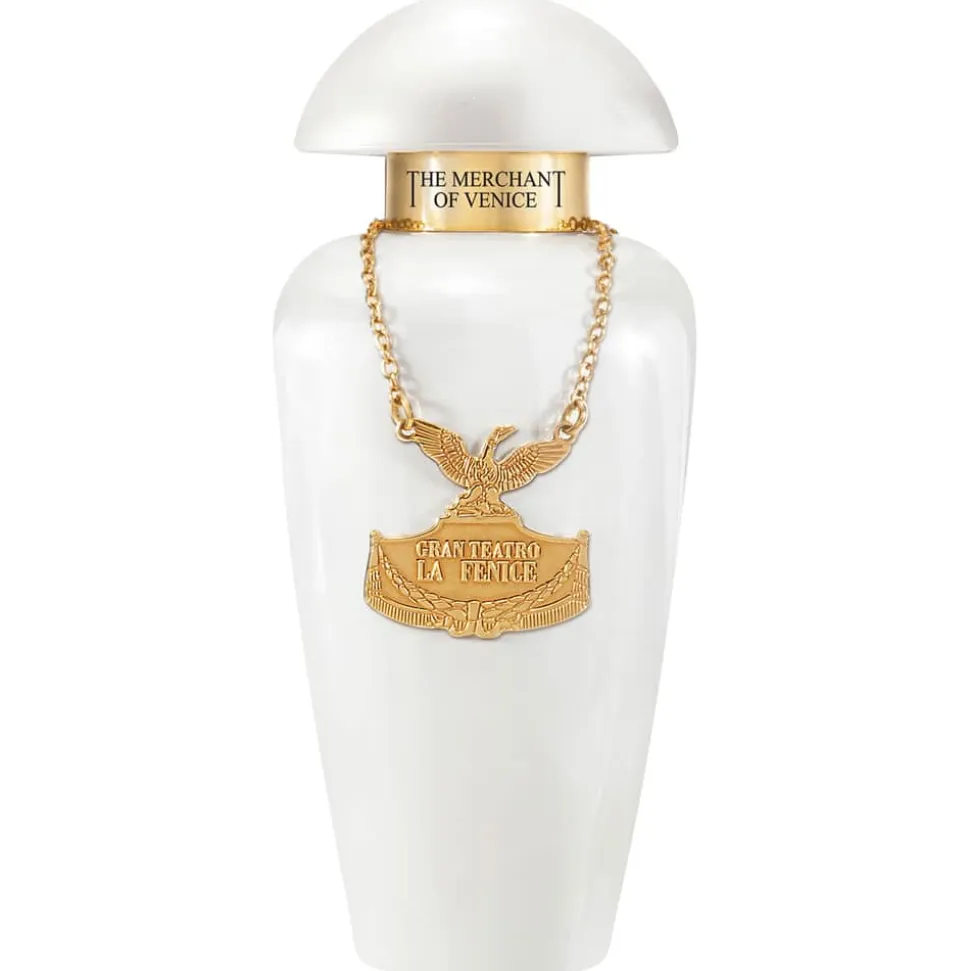 Der Flakon von THE MERCHANT OF VENICE My Pearls Eau de Parfum Nat. Spray besticht durch seine elegante Form und zeitlose Schönheit. Das perlmuttartige Weiß des Flakons steht in faszinierendem Kontrast zu den goldenen Akzenten, die ihm eine königliche Anmut verleihen. Die formvollendete Silhouette erinnert an klassische Skulpturen, während die goldene Kette mit dem Emblem des La Fenice Theaters ein edles Detail darstellt, das jeden Moment veredelt. Ein Flakon, der nicht nur Duft, sondern auch Kunstwerk ist und in jedem Raum einen Hauch von Glamour verströmt.