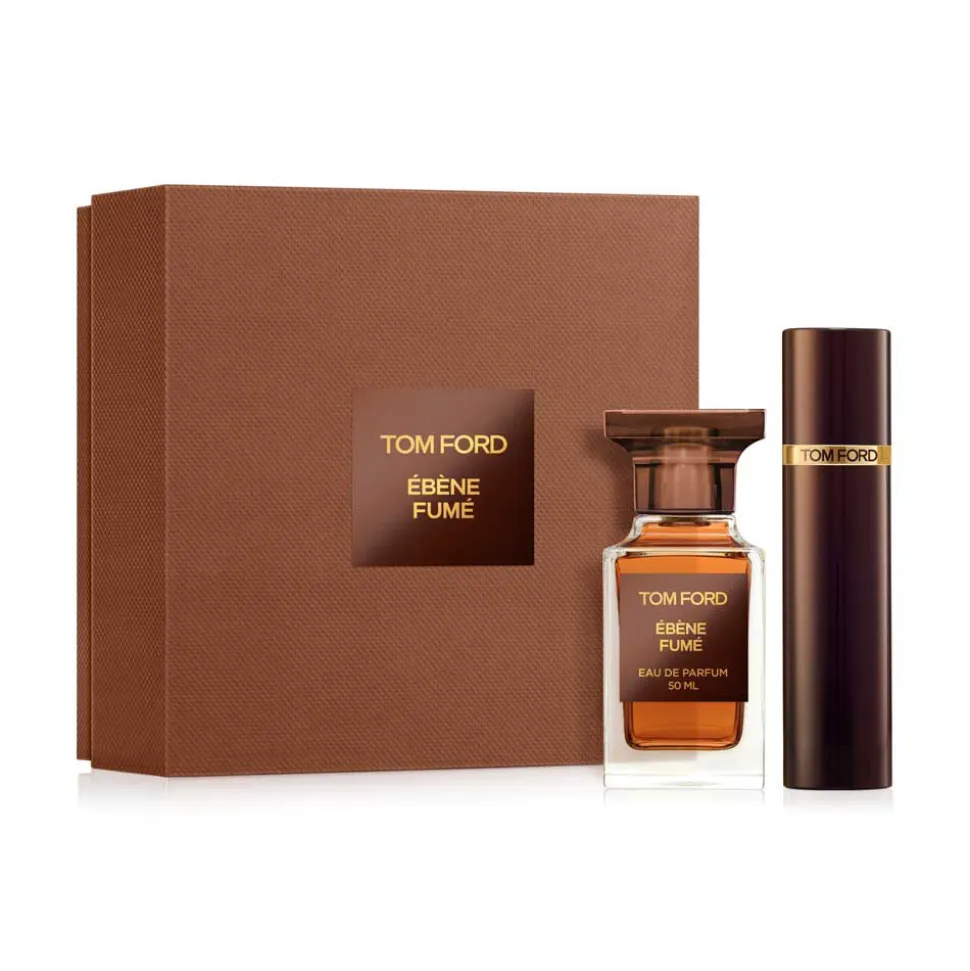 Das Geschenk von Ébène Fumé. Ein meditativer, holziger Amberduft mit Noten von Palo Santo und Rose. Dieses Geschenkset enthält eine 50-ml-Eau-de-Parfum-Flasche und einen 10-ml-Reisespray.