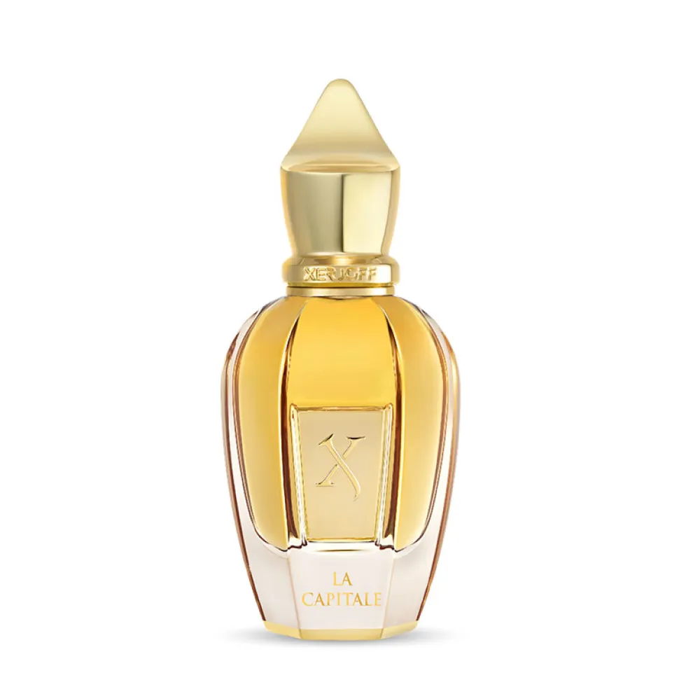 Der Flakon des Xerjoff La Capitale ist ein Meisterwerk der Eleganz und des Designs. Seine Form erinnert an eine kostbare Schmuckschatulle, die kostbare Geheimnisse birgt. Der Körper ist in einem edlen Goldton gehalten, der das luxuriöse Wesen des Duftes widerspiegelt. Die geschwungenen Linien und die präzise Verarbeitung spiegeln die Raffinesse wider, die Sie von einem Produkt dieser Klasse erwarten. Der Verschluss in seiner majestätischen Form verleiht dem Flakon eine königliche Anmutung und macht ihn zu einem Blickfang in jeder Parfümsammlung. Dieses Design zeugt von zeitloser Schönheit und unterstreicht die erlesene Qualität des Inhalts.