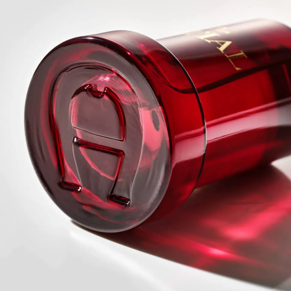 Der Flakon des AIGNER Eau de Parfum Nat. Spray ist ein Meisterwerk der Eleganz und Schlichtheit. Der zylindrische Körper aus hochwertigem Glas thront auf einem massiven Sockel und vermittelt Stabilität und Klasse. Die mattschwarze Kappe birgt ein spielerisches Detail: eine Zamak-Münze mit Hufeisenprägung. Diese kann individuell graviert werden und macht den Flakon zu einem persönlichen Statement. Das Design vereint raffinierte Schlichtheit mit luxuriösen Details und reflektiert die Essenz des Duftes perfekt.