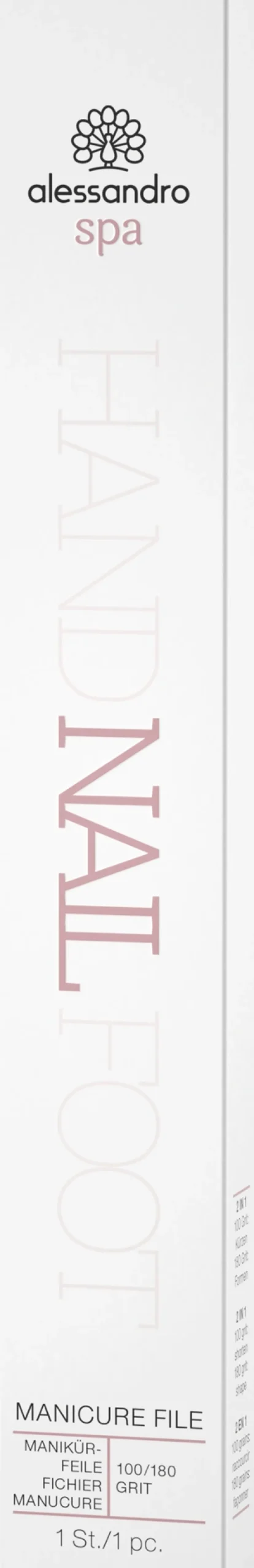 Die Alessandro Manicure Feile 100/180 besticht durch ihr schlankes, elegantes Design. Der minimalistische Look in dezentem Grau verleiht der Feile eine zeitlose Ästhetik. Die fein strukturierte Oberfläche sorgt nicht nur für eine elegante Optik, sondern bietet auch hervorragenden Halt während der Anwendung. Die abgerundeten Kanten der Feile sind nicht nur ein optisches Highlight, sondern schützen zudem Ihre Nägel vor Schäden. Ihre schlanke Form ermöglicht eine einfache Aufbewahrung und macht sie zum perfekten Begleiter für unterwegs. Hier trifft Funktionalität auf Stil – ein durchdachtes Design, das Ihre Pflegeroutine bereichert.
