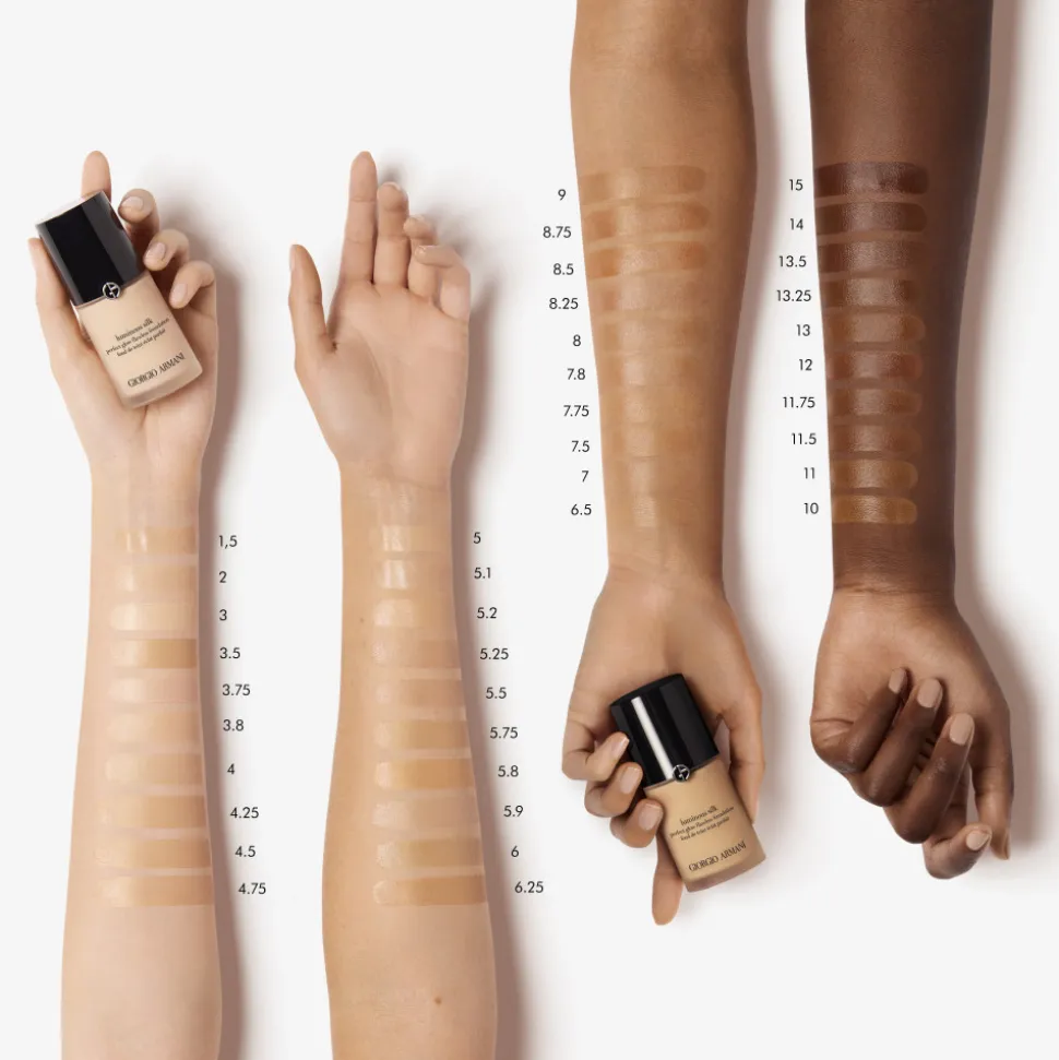 Die Armani Luminous Silk Foundation Travel Size fängt das Strahlen eines perfekten Teints ein und hinterlässt eine frische, vitale Ausstrahlung. Inspiriert von luxuriöser Charmeuse-Seide, umhüllt die flüssige Textur Ihre Haut und schenkt ihr ein seidiges, semi-mattes Finish. Die exklusive Micro–fil™ Technologie sorgt für einen Weichzeichner-Effekt, der Ihre Haut bei jedem Lichtverhältnis perfekt erscheinen lässt. Ob Tageslicht, künstliches Licht oder im Rampenlicht — das Ergebnis bleibt über Stunden frisch. Die Foundation bietet eine individuell anpassbare Deckkraft, die sich ohne Maskeneffekt von mittelstark bis maximal deckend variieren lässt. Ihre ölfreie und feuchtigkeitsspendende Formulierung ist für alle Hauttypen geeignet und in 31 Nuancen verfügbar.