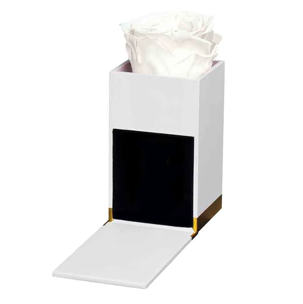 Die Birkholz Flower Mini Box White beeindruckt mit ihrer schlichten, jedoch edlen Optik. Der elegante, klare Weißton der Box wird von einem goldenen Sockel stilvoll akzentuiert, was ihr eine luxuriöse Ausstrahlung verleiht. Im Inneren verzaubert eine einzelne, makellose weiße Infinity Rose, die mit ihrer zeitlosen Schönheit besticht. Diese Rose, von Hand gefertigt, symbolisiert Beständigkeit und Eleganz. Das Design der Box ist minimalistisch und dennoch durchdacht, um die Wirkung der Rose und des Duftes perfekt in Szene zu setzen. Diese harmonische Komposition aus Form und Funktion macht die Birkholz Flower Mini Box White nicht nur zu einem Geschenk, sondern zu einem Objekt der Begierde.