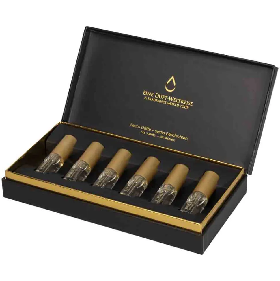 Das Birkholz Sommelier-Set Philip Birkholz bietet Ihnen eine sorgfältig kuratierte Auswahl an Parfumproben, die Ihre Sinne auf eine faszinierende Reise mitnehmen. Jeder Mini-Glasflakon enthält einen unverwechselbaren Duft, der in der hauseigenen Manufaktur mit größter Hingabe und Expertise entwickelt wurde. Diese Kollektion erlaubt es Ihnen, die Individualität und Tiefe jedes Duftes zu erleben, während Sie zugleich Ihren ganz persönlichen Favoriten entdecken können. Lassen Sie sich von der Vielfalt verführen und finden Sie den Duft, der Ausdruck Ihrer Persönlichkeit ist und Ihnen ein Gefühl von Einzigartigkeit verleiht.