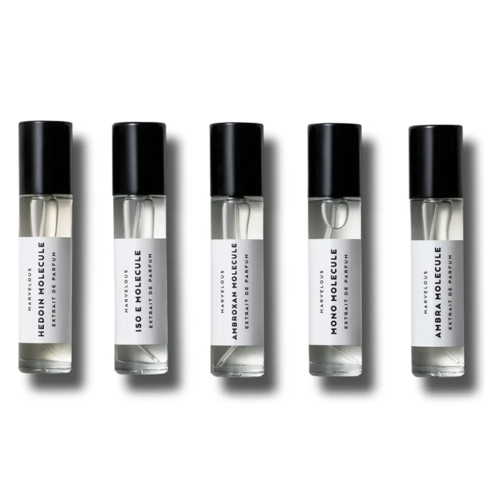 Das BMRVLS Travel Set bietet Ihnen die Möglichkeit, in die faszinierende Welt der Moleküldüfte einzutauchen. In diesem Set finden Sie fünf außergewöhnliche Parfums, die alle durch ihre Einzigartigkeit bestechen. Der AMBRA MOLECULE sorgt mit seiner warmen, sinnlichen Note für ein Gefühl wie flüssiges Gold auf Ihrer Haut. Der AMBROXAN MOLECULE hingegen verleiht Ihnen mit seiner puren, kraftvollen Essenz einen Hauch von zeitloser Eleganz. Verführerisch und elektrisierend ist der HEDOIN MOLECULE, ein wahrer Pheromon-Booster für besondere Gelegenheiten. Der ISO-E MOLECULE beeindruckt durch seinen minimalistischen, jedoch hypnotischen Charakter kaum wahrnehmbar, aber dennoch wirkungsvoll. Schließlich rundet der MONO MOLECULE das Set mit seiner reinen, unverfälschten Stärke ab. Jedes dieser Parfums ist ein Meisterwerk der Innovation und lädt Sie dazu ein, Ihre persönlichen Momente zu bereichern.