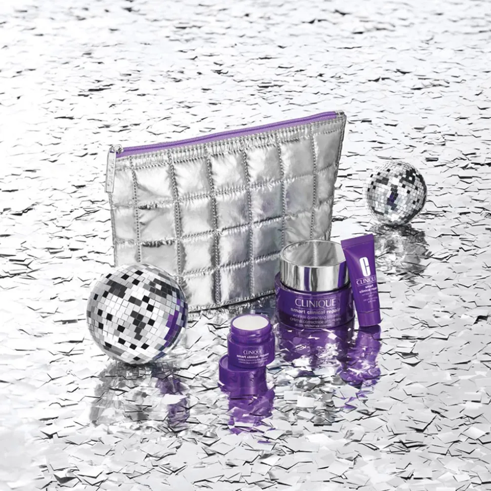 Mit Clinique Get Smart erhalten Sie eine umfassende Pflege, die speziell für alle Hauttypen, inklusive empfindlicher Haut, entwickelt wurde. Im Mittelpunkt steht das fortschrittliche De-Aging-Trio, das eine sichtbar jünger aussehende Haut fördert. Das Set beinhaltet das Clinique Smart Clinical Repair Wrinkle Correcting Serum, das hartnäckige Linien und Falten gezielt bekämpft. Dank seines sanften Retinoids ist es zweimal täglich anwendbar. Die Wrinkle Correcting Cream spendet intensive Feuchtigkeit und reduziert Falten sichtbar, sorgt so für ein glatteres, jugendliches Hautbild. Ergänzt wird das Set durch die Wrinkle Correcting Eye Cream, die die empfindliche Augenpartie stärkt und glättet. Alle Produkte wurden auf Allergien getestet und sind 100% parfümfrei, was sie zu einer sicheren Wahl für Ihre tägliche Hautpflege macht.