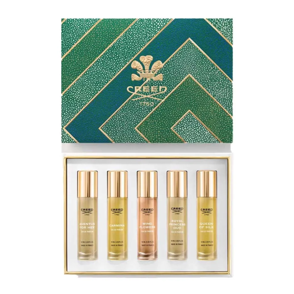 Das 5-teilige Geschenkset für Damen ist eine Einladung zum Auspacken von Exzellenz in dieser festlichen Jahreszeit und eine hervorragende Ausdrucksform für den Duft und das Storytelling von The House of Creed. Diese limitierte Kollektion umfasst fünf der berühmtesten Kreationen von Creed, die verschiedene Ausdrucksformen der modernen Weiblichkeit erforschen: