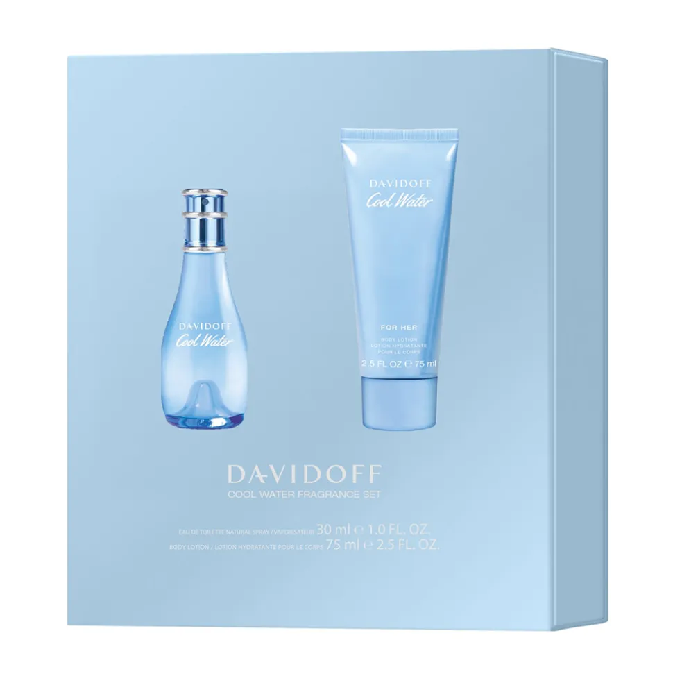 Dieses Set enthält: – Davidoff Cool Water Eau de Toilette für Damen 30 ml – Davidoff Cool Water Bodylotion für Damen 75 ml