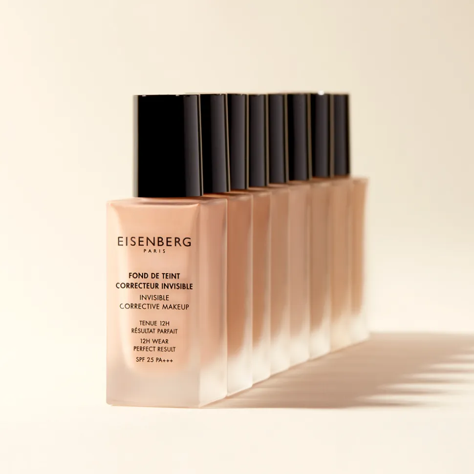 Der EISENBERG Fond de Teint Correcteur Invisible bietet Ihrer Haut eine luxuriöse Erfahrung. Die unglaublich leichte Textur verschmilzt förmlich mit Ihrem Teint und sorgt für einen natürlichen, frischen Nude-Look. Diese innovative Formel korrigiert sanft Unebenheiten und verleiht Ihrer Haut einen strahlenden Eindruck. Dank Granatapfelextrakten werden freie Radikale neutralisiert, während Süßmandelöl Ihre Haut nährt und mit Feuchtigkeit versorgt. Die Trio-Molecular® Formula in Kombination mit LSF 25 PA+++ bietet einen effektiven Schutzschild gegen schädliche Umwelteinflüsse. Mit 12 Stunden Halt bleibt Ihr Look bei jedem Wetter makellos. Die ölfreie, nicht komedogene Formel ist dermatologisch und ophthalmologisch getestet.