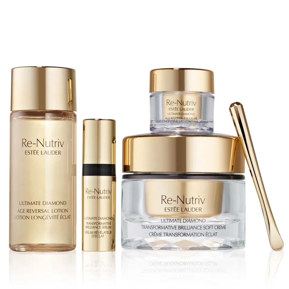 Entdecken Sie sichtbare Altersumkehr. Diese außergewöhnliche Kollektion verleiht der Haut neue Strahlkraft und unterstreicht ihre natürliche Jugendlichkeit. RE-NUTRIV: ENTZÜNDET DURCH DIE PATENTIERTE SIRTIVITY-LP™ AGE REVERSAL TECHNOLOGIE Mit über 15 Jahren bahnbrechender Forschung enthüllt Re-Nutriv einen radikalen Bauplan, um die Zeit sichtbar zurückzudrehen. Die SIRTIVITY-LP™-Technologie „aktiviert“ Jugend-Langlebigkeitsproteine und setzt sichtbare Altersumkehr in Gang. Sie zielt auf mehrere Sirtuine ab, darunter SIRT-1, SIRT-3 und SIRT-6. Erleben Sie sichtbare Altersumkehr – messbare Brillanz. Re-Nutriv-Formeln enthalten zudem unseren exklusiven Black Diamond Truffle Extract, der in In-vitro-Tests gezeigt hat, dass er der Haut hilft, ihre natürliche Energie und sichtbare Vitalität zu stimulieren. Erleben Sie die Kraft von SIRTIVITY-LP™ mit diesen Re-Nutriv Meisterwerken: Seidige, luxuriöse Flüssigkeit, die die Strahlkraft der Haut aktiviert. Re-Nutriv Age Reversal Lotion zieht schnell ein und durchdringt die Haut. Spendet intensive Feuchtigkeit, beruhigt, polstert und glättet. Re-Nutriv Age Reversal Eye Creme. Jugend erstrahlt: Die Augenpartie wirkt fester, glatter, weniger Linien, sichtbar geliftet. Brillanz enthüllt: Der Bereich unter den Augen erscheint aufgehellt und die Augen wirken leuchtend. Re-Nutriv Transformative Brilliance Serum. Unterstützt die jugendliche Struktur der Haut und enthüllt neue Leuchtkraft. Erfrischt die Haut und trägt dazu bei, ein pralleres, glatteres Gefühl wiederherzustellen. Die Haut wirkt voller Energie. Re-Nutriv Transformative Brilliance Soft Creme. Verwandelt das Aussehen wesentlicher Facetten Ihrer Schönheit mit einem strahlenderen, ebenmäßigeren Teint. Polstert mit intensiver Feuchtigkeit. Stärkt die Widerstandskraft der Haut für ein festeres, jugendlicheres Aussehen. CREATING THE FUTURE OF BEAUTY TOGETHER. Bitte recyceln Sie die Papier-Einlage. Verwenden Sie die Geschenkbox als Erinnerungsstück oder recyceln Sie sie. Limitierte Kollektion mit diesen Re-Nutriv Luxusprodukten: • Re-Nutriv Ultimate Diamond Age Reversal Eye Creme, Luxus-Reisegröße (.17 oz./5ml) • Re-Nutriv Ultimate Diamond Age Reversal Lotion, Luxus-Reisegröße (1.7 oz./50ml) • Re-Nutriv Ultimate Diamond Transformative Brilliance Serum, Luxus-Reisegröße (.17 oz./5ml) • Re-Nutriv Ultimate Diamond Transformative Brilliance Soft Creme, Originalgröße (1.7 oz./50ml)