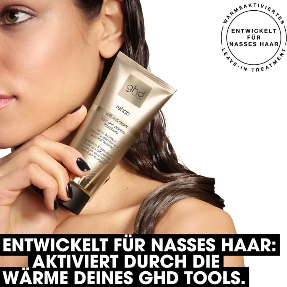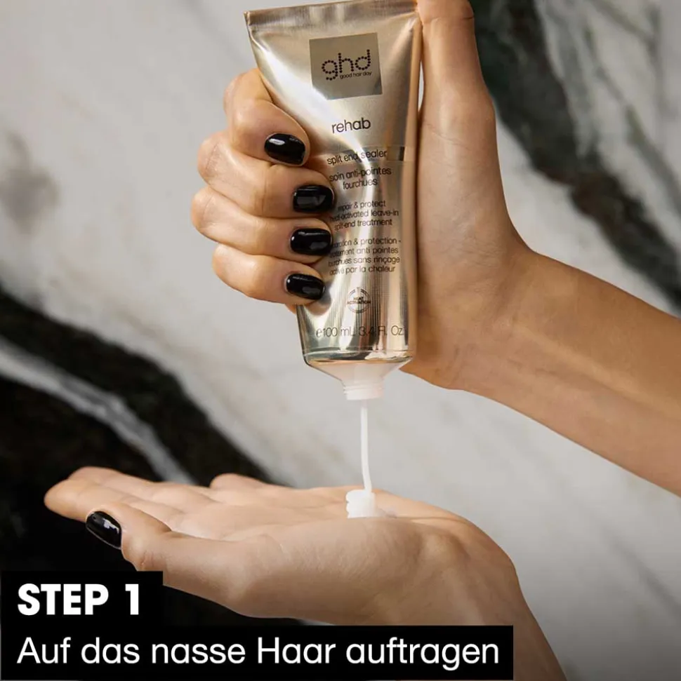 Entdecke ghd rehab – eine Serie wärmeaktivierter Leave-in Treatments, die Dein Haar mühelos pflegen. Entwickelt für die Anwendung in nassem Haar. ghd rehab verbessert den Zustand jeder Strähne – für makellose Ergebnisse ohne Ausspülen oder Einwirkzeit mit integriertem ghd Hitzeschutz. Dieses Leave-in Treatment ist Dein Partner für lang anhaltend genährtes, starkes1 und sich gesund anfühlendes Haar.2
