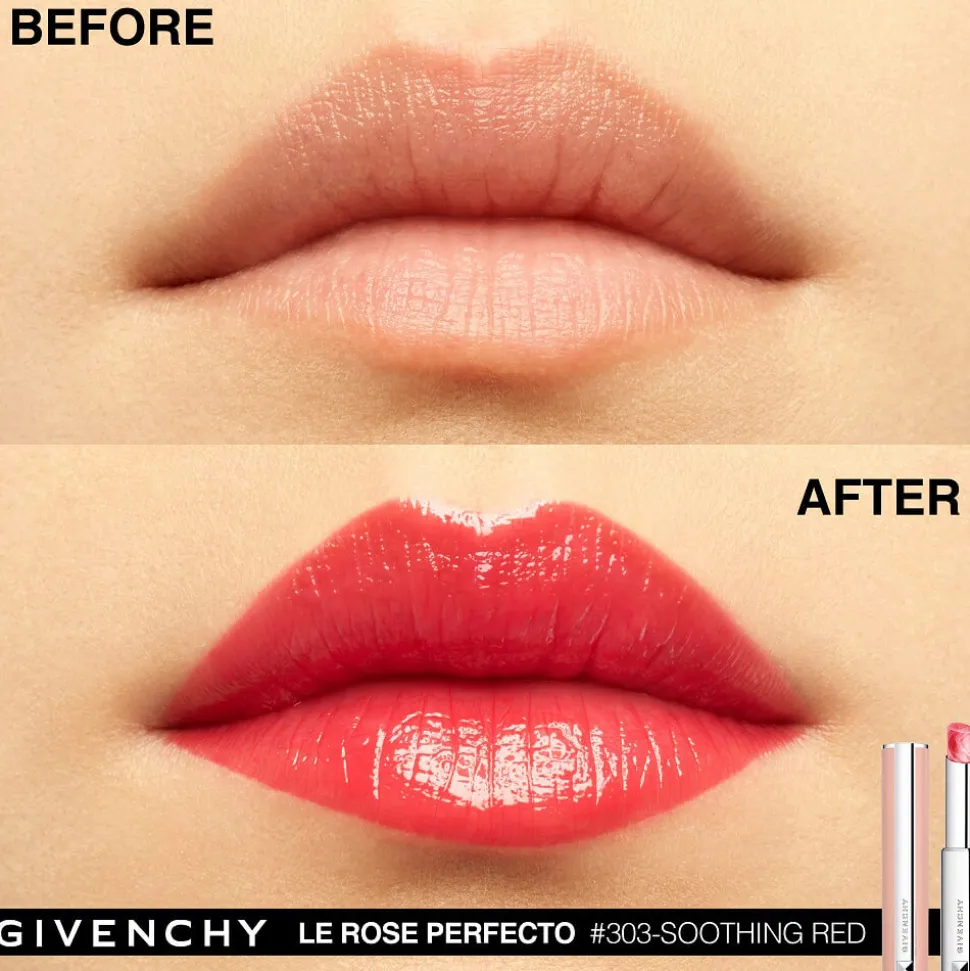 Givenchy Le Rose Perfecto vereint intensive Farbe mit außergewöhnlicher Pflege. Die raffinierte Formel setzt auf natürliche Inhaltsstoffe, um Ihre Lippen langanhaltend mit Feuchtigkeit zu versorgen und frische Farben zum Strahlen zu bringen. Dank der enthaltenen Rosenöl- und Hyaluronsäure, kombiniert mit Vitamin C, rosa Pfeffer und Sheabutter, genießen Sie zartschmelzende Pflege, die Ihre Lippen 24 Stunden lang nährt und aufpolstert. Die innovative Zusammensetzung sorgt für ein gesundes Strahlen, das Ihre natürliche Schönheit unterstreicht. Nachhaltigkeit steht im Mittelpunkt, indem die Verpackung aus verantwortungsvollen Quellen stammt, was den ökologischen Fußabdruck reduziert.