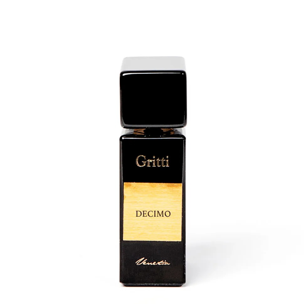 Der Flakon des Gritti Decimo Eau de Parfum Sprays beeindruckt durch klare, elegante Linien und eine schlichte, aber dennoch kraftvolle Erscheinung. Die schwarze, rechteckige Form strahlt zeitlose Eleganz und Seriosität aus. Der massive Verschluss unterstreicht die Wertigkeit des Duftes. Ein goldenes Etikett ziert die Front und bildet einen edlen Kontrast zur dunklen Hülle. Jedes Detail des Designs ist auf Harmonie und Perfektion abgestimmt, was die einzigartige Komposition des Duftes optisch widerspiegelt. Dieser Flakon ist ein wahres Schmuckstück für jede Parfümsammlung, das auch optisch ein starkes Statement setzt.