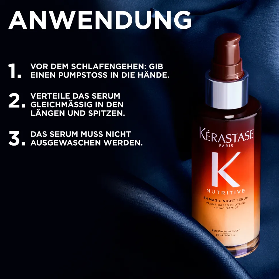 Das KÉRASTASE 8H Magic Night Serum ist eine wahrhaft transformative Pflege für Ihr Haar. Während Sie schlafen, entfaltet das Serum seine achtstündige Wirkung, die speziell darauf ausgelegt ist, trockenes Haar intensiv zu revitalisieren und zu regenerieren. Der Schutz vor Kopfkissenreibung sorgt dafür, dass die Haarfasern am Morgen glatt und geschmeidig bleiben. Die einzigartige Formel stellt die notwendige Hydratation der Haarfaser wieder her, was zu einer bemerkenswert strahlenden und jugendlichen Haarstruktur führt, wenn der neue Tag beginnt. Dank der sorgfältig ausbalancierten Inhaltsstoffe wird die natürliche Feuchtigkeit Ihres Haares auf sanfte und effektive Weise wiederhergestellt.