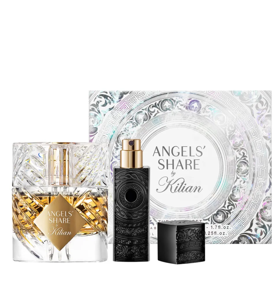 Das Kilian Paris Icon Set besticht durch seine beeindruckende visuelle Gestaltung. Der Flakon von „Angel’s Share“ ist ein wahres Meisterwerk. Er präsentiert sich in einer kristallklaren Form, die an edles Glas erinnert, und umhüllt den goldfarbenen Duft mit einer luxuriösen Aura. Der Reisespray ist nicht minder elegant: Mit seiner schwarz-goldenen Lackierung und filigranen Mustern verkörpert er zeitlose Eleganz. Die Kombination aus hochwertigen Materialien und der kunstvollen Verarbeitung macht dieses Set zu einem stilvollen Begleiter für jede Gelegenheit.