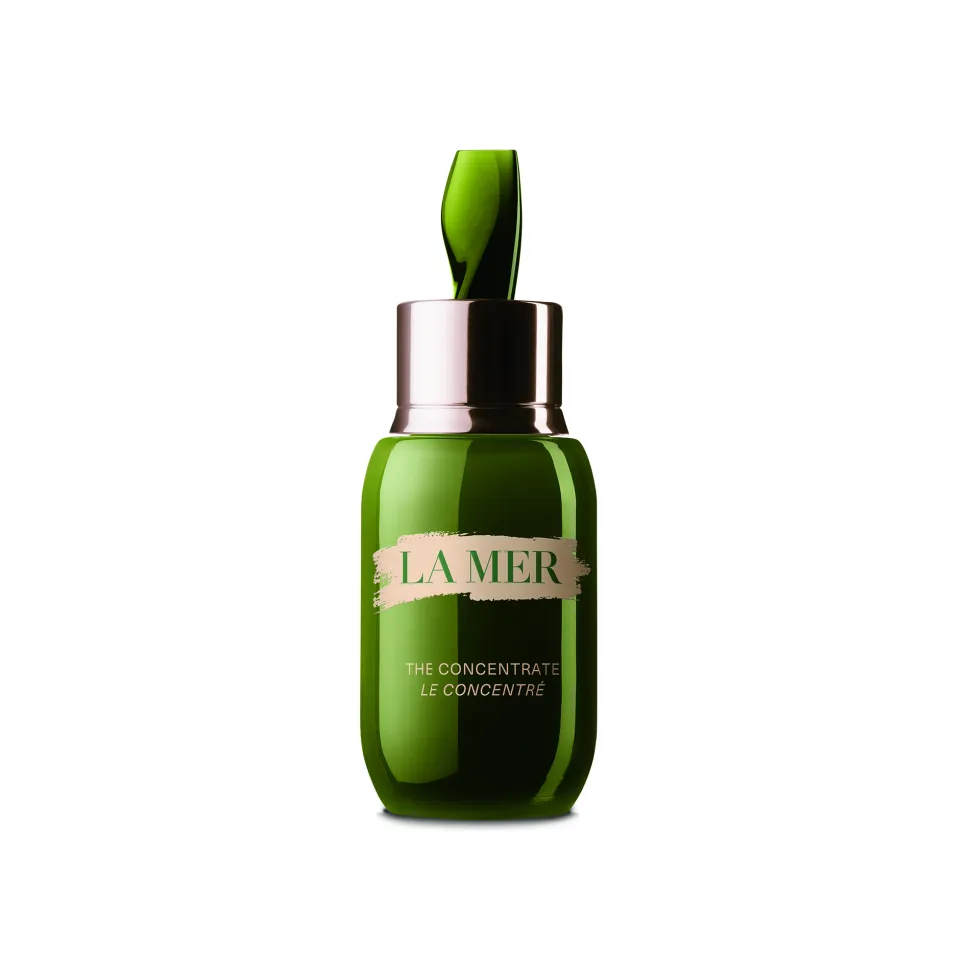 Der elegante Flakon des La Mer Concentrate Reform besticht durch seine klare, fließende Form und die tiefgrüne Farbgebung, die an die beruhigenden Kräfte des Meeres erinnert. Der sorgfältig gestaltete Verschluss harmoniert perfekt mit dem Gesamtbild, während die goldene Schrift dezent den luxuriösen Charakter unterstreicht. Ein Design, das nicht nur optisch beeindruckt, sondern auch funktional überzeugt und das tägliche Pflegeritual zu einem ästhetischen Genuss macht.