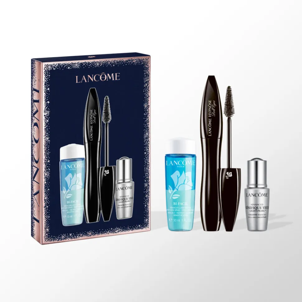 Das Lancôme Doll Eyes Mascara Set bietet Ihnen eine vollständige Lösung für atemberaubende Augenblicke. Die Hypnôse Doll Eyes Mascara besticht durch ihre ikonische Bürste, die mit 360 Mikroborsten jede Wimper zuverlässig erfasst und definiert. Genießen Sie einen intensiven Augenaufschlag, der bis zu 24 Stunden anhält, ohne zu verklumpen. Ergänzt wird dieses Set durch das Génifique Yeux Light-Pearl Serum, das Ihre Augenpartie erfrischt und strahlend erscheinen lässt. Der Bi-Facil Reiniger sorgt für eine sanfte und effektive Reinigung, die selbst wasserfestes Make-up entfernt. Diese Geschenkkollektion, entworfen von der französischen Künstlerin Safia Ouares, verleiht Ihnen während der festlichen Jahreszeit eine außergewöhnliche Ausstrahlung und bringt den Geist von Paris direkt zu Ihnen.