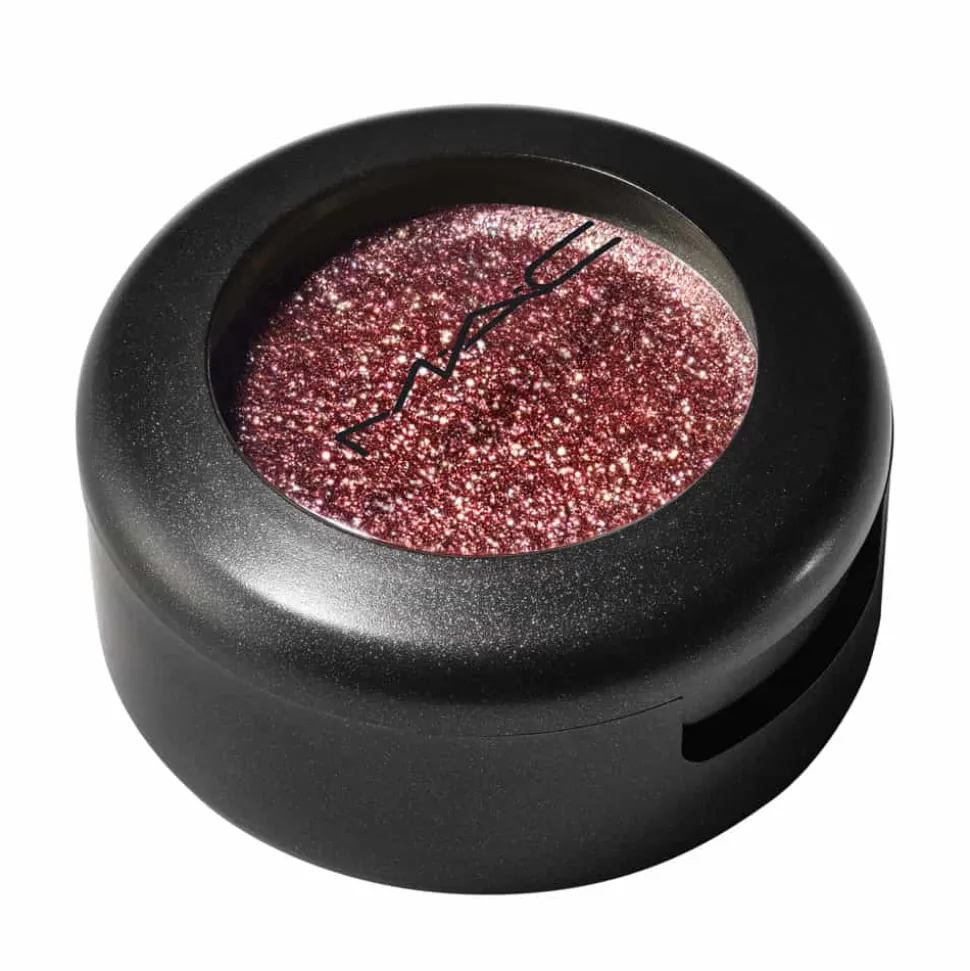 Der Mac Dazzleshadow präsentiert sich in einem ansprechend gestalteten, kompakten Döschen, das durch seine runde, elegante Form besticht. Der Deckel ist in einem tiefen Schwarz gehalten und öffnet sich sanft, um einen Blick auf die funkelnde Textur im Inneren zu gewähren. Die glitzernde Oberfläche des Lidschattens zieht sofort die Aufmerksamkeit auf sich und verspricht ein luxuriöses Anwendungserlebnis. Das handliche Format ermöglicht eine einfache Handhabung und macht den Dazzleshadow zu einem idealen Begleiter für unterwegs.